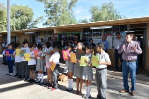 Caborca, Sonora.- El Presidente Municipal Librado Macías González y funcionarios de su administración, acompañaron a la comunidad escolar de la Primaria Justo Sierra Méndez a la celebración del Lunes Cívico, con el que dieron inicio al ciclo 2019-2020, evento en el que se contó también con directivos de la SEC y del Sector Salud para dar inicio a Segunda Jornada Nacional de la Lucha contra el Dengue, Zica y Chikungunya.