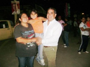 CABORCA, SON.- Llamò mucho la atención de los habitantes de El Bonito que asistieron en días pasados al mìtin de Pepe Palacios, cuando el terminar el evento, el candidato a la alcaldía de Caborca por el PRI-Verde abrazara con un gusto muy especial a una niña que estaba sentada en el regazo de su madre.