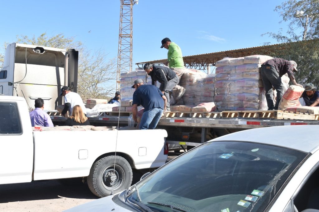 De nueva cuenta decenas de familias que participan en los grupos comunitarios Caborca Urbano para el mejoramiento de viviendas se vieron beneficiadas con la entrega de cemento y mortero adquiridos gracias al convenio del gobierno municipal, que preside el alcalde Librado Macías González, con la Congregación Mariana Trinitaria.